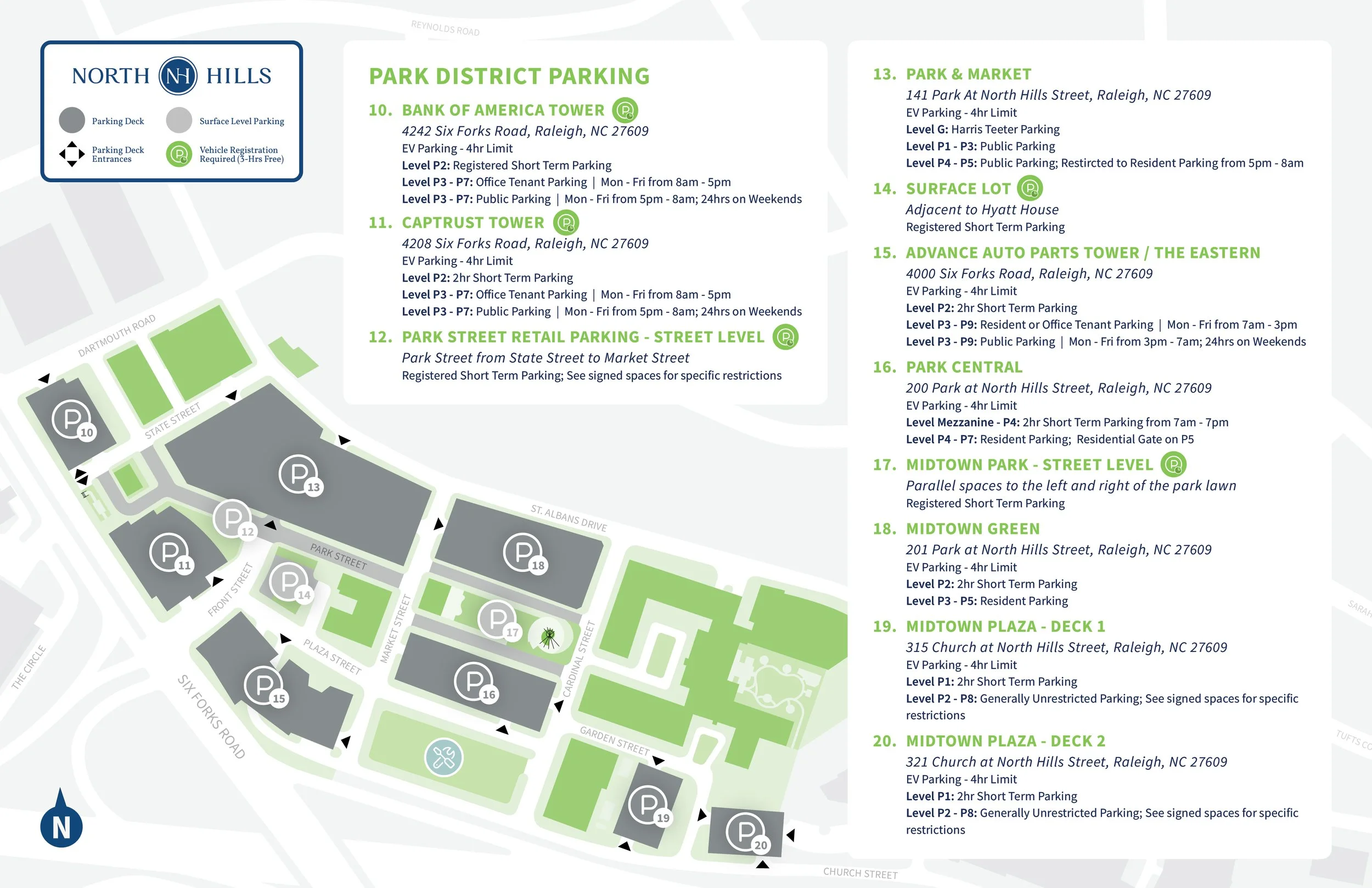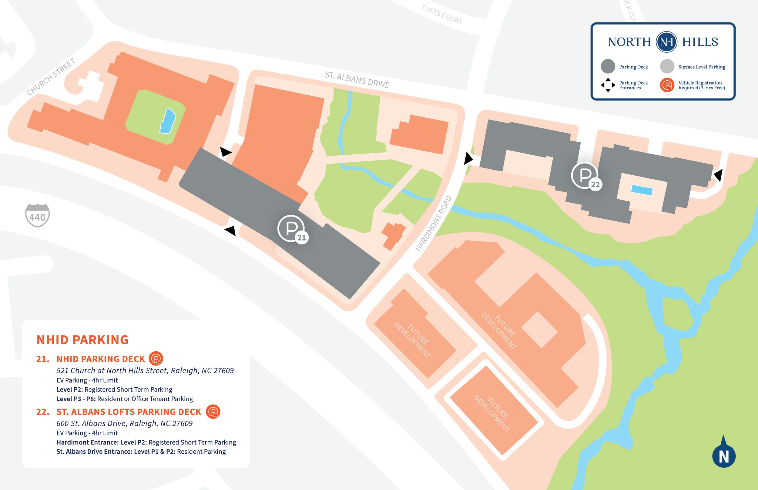 The enforcement of restricted parking areas is provided by a third-party vendor. North Hills does not establish or collect fees. If your car was booted or towed, please contact Integrity Towing at 919.790.9393. If you received a parking ticket, please contact Power Parking at nhsupport@mypowerparking.com.